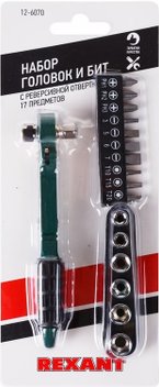 Набор трещотка с головками и битами Rexant 12-6070 (17 предметов)